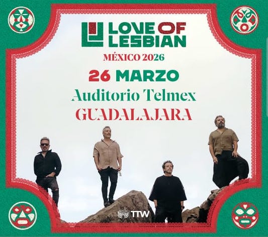 De nueva cuenta, los españoles Love Of Lesbian regresan a Guadalajara después de ofrecer un set rápido en su presentación en el Vive Latino 2026, donde brindaron diez canciones de lo mejor de su repertorio e incluso en el tema “Contradicción”, tuvieron como invitada a la escritora y también compositora Rigoberta Bandini
